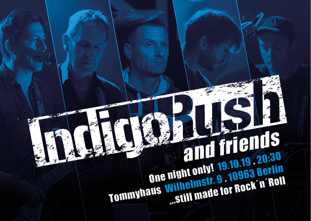 Im Jubiläumsjahr gibt es noch zweimal Gelegenheit die Band zu sehen. Höhepunkt wird der große Auftritt am 19.10.19 sein. IndigoRush & Friends spielen Songs der letzten 15 Jahre. Bei diesem Gig wünscht sich die Band ein gerammelt volles Tommyhaus.
