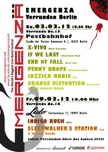 Kein EMERGENZA ohne IndigoRush!!! 28. Februar 2012 Martin IndigoRush freut sich auf EMERGENZA 2012!!! Im wunderschönen Lido findet am 9. März die letzte Vorrunde der Saison statt. Beitrags-Navigation Vorheriger BeitragAC/DC-Tribute: IndigoRush sagt ab!Nächster BeitragFürs emergenza-Halbfinale qualifiziert!